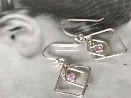 Ohrhänger Ohrringe 925 Silber Modernistisch originell geschliffenem rosa Stein