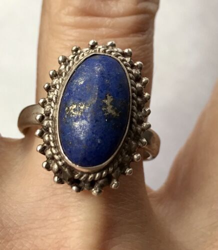 Jugendstil Edel Lapislazuli DAMEN RING Silber SUPER Design Gr.61 19,4