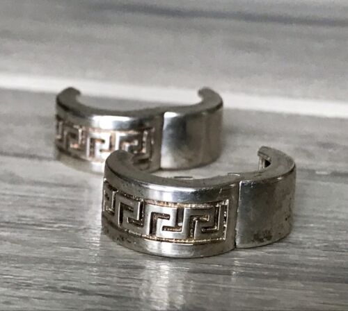 Designer Vintage Ohrringe 925 Silber Creole F. Breuning Pforzheim Mäander Muster