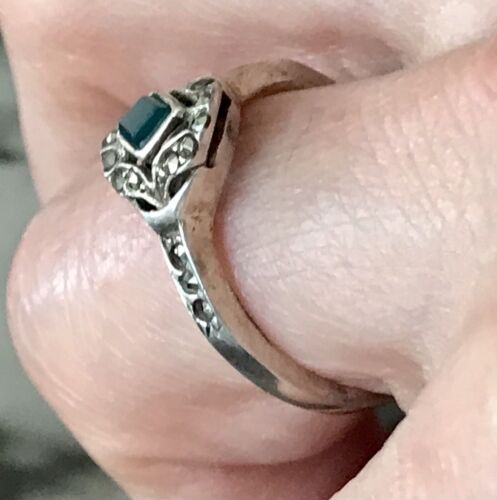 Art Déco Antik Damen Solitär Ring blauer Stein Saphir? Silber 835 Gr.55 17,5