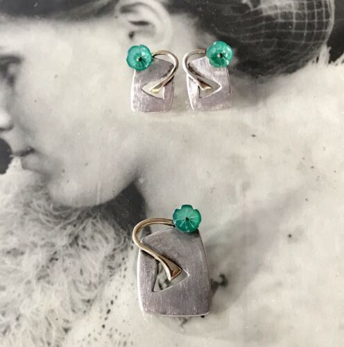 Damen Set Schmuck Anhänger Ohrringe Silber 925 SUPER grüne Blüten Designer