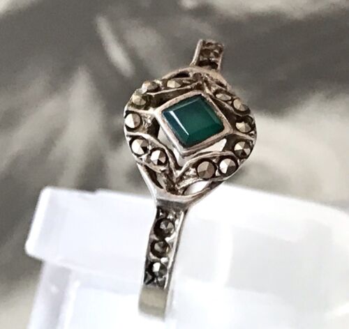 Antikisiert Art Déco Stil Damen Ring grüner Stein Silber 925 Gr.57 58