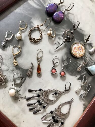 Konvolut Antik alt Bruchsilber Ohrringe Ohrstecker Silber Einzelteile & Paare