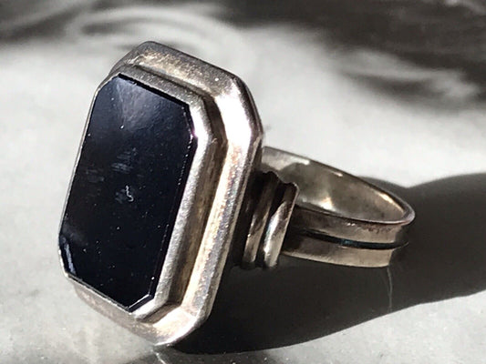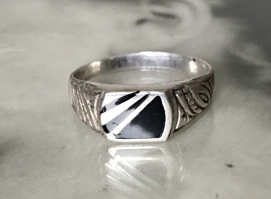 Antik? Vintage Art Déco Herren RING Siegelring schwarzer Onyx Silber Gr.66