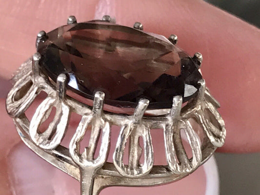 Vintage Edel Rauchquarz Stein DAMEN RING Silber 835 Gr.57 1,81
