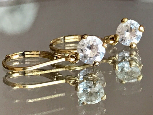 Vintage schöne Ohrringe Ohrstecker DAMEN Silber vergoldet gold farblose Steine