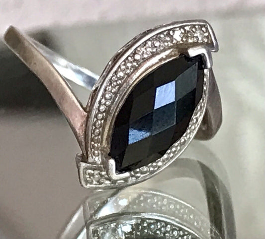 Vintage Onyx? DAMEN RING Silber 925 Gr.55 17,5 Schiffchen