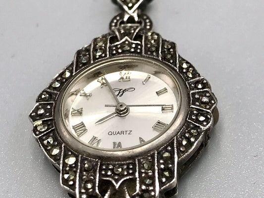 Vintage EDEL!!! Art Déco Stil 925 Silber Armbanduhr Damen Markasite wundervoll!