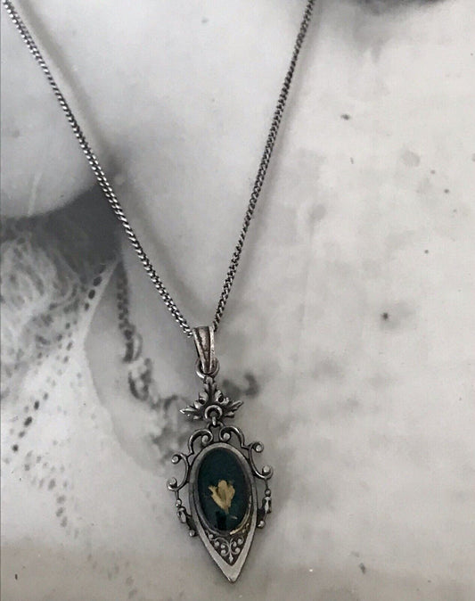 Antik Jugendstil Silber Collier 835 Halskette Anhänger versilbert grün bemalt?