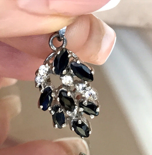 Antik Art Déco DAMEN 925 Silber Saphire? & farblose Steine Anhänger WUNDERSCHÖN!