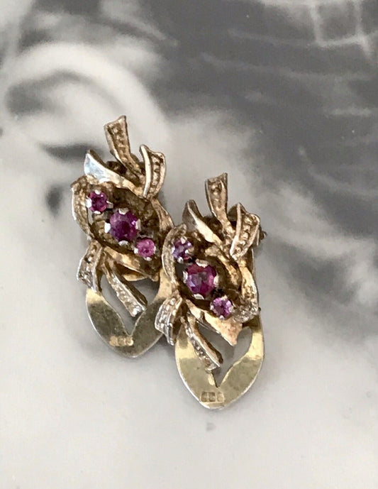 Vintage spätes Art Déco Edel Ohrclipse Ohrringe 835 Silber vergoldet Rubine