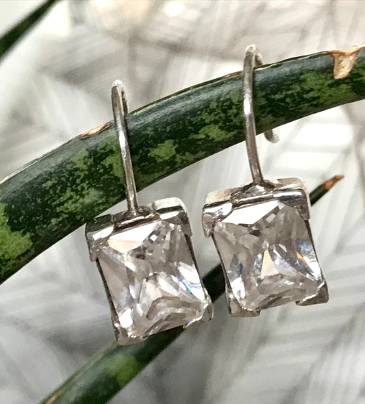 Alt Vintage Ohrringe Ohrstecker Farbloser Stein DAMEN Silber