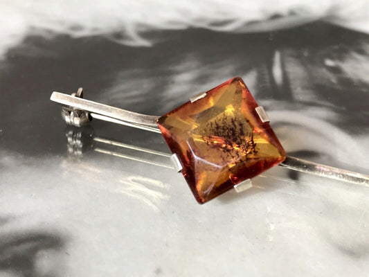Antik Art Déco Edel Stabbrosche Silber 925 Bernstein vergoldet Brosche