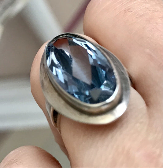 Vintage Edel DAMEN RING Silber 835 blauer Stein Topas? Gr.52 16,5