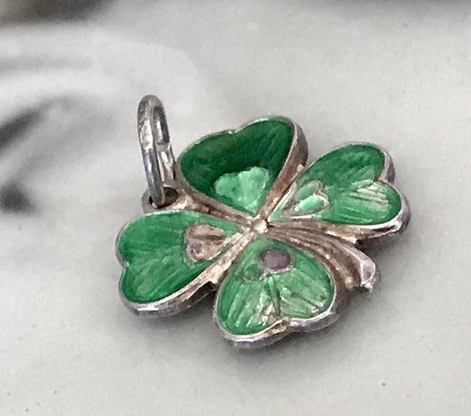 Antik Glücksbringer 4blättriges Kleeblatt Anhänger 835 Silber grüne Emaille