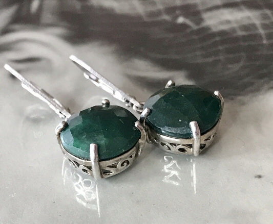 Alt Vintage Ohrringe Ohrhänger DAMEN Silber grüner Stein Onyx?