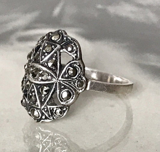 Antik Art Déco Edel Markasite DAMEN RING Silber 925 Gr.52 53 Schiffchen 1,68