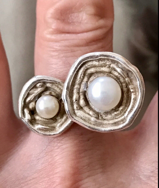 Vintage Modernist Designer DAMEN RING 925 Silber ADK Gr.58- 60 Perlen