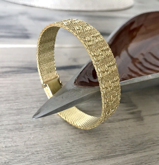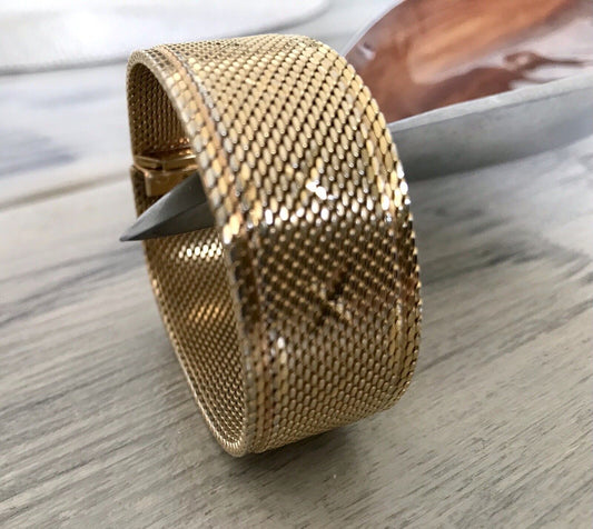 Vintage wunderschönes breites Teppicharmband Armband vergoldet
