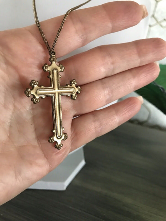 Antik Alt Amerik. Doublè Kreuz Anhänger schön Farbe gold
