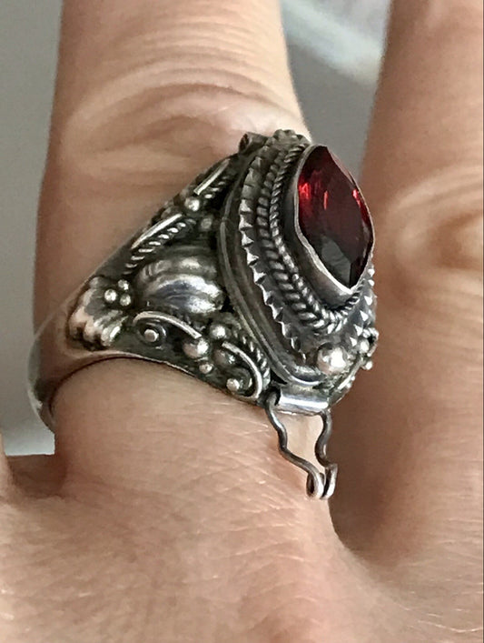 Vintage Edel Granatstein? DAMEN Giftring RING Silber 925 Gr.57