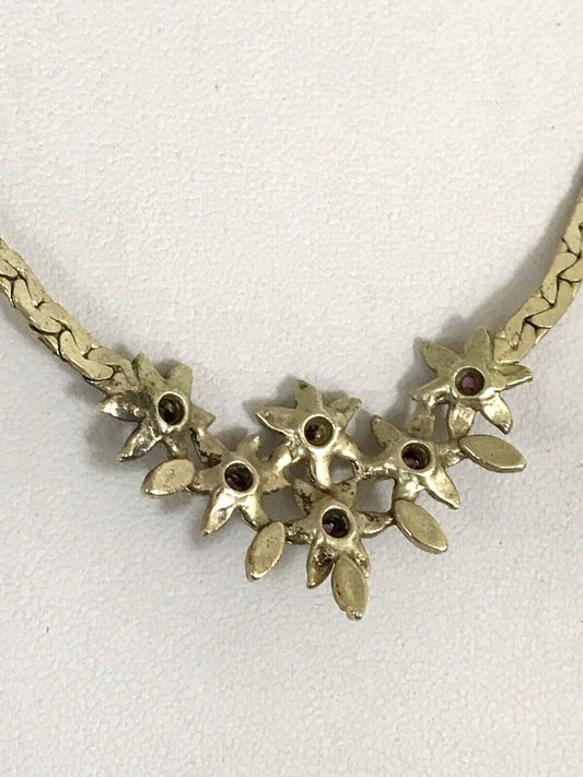 Antik Edel Jugendstil 925 Silber vergoldet Collier Halskette Rubine