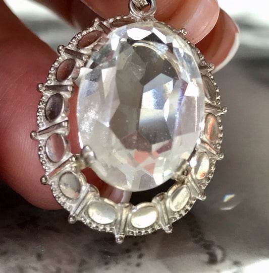 Vintage Alt Kettenanhänger Anhänger 835 K&L Silber farbloser Stein WOW