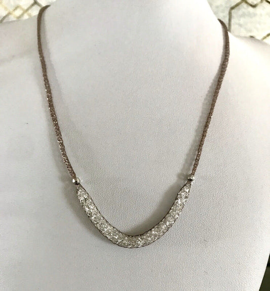 Alt Vintage Edel Gold 333 Gold & 925 Silber Collier Halskette Goldnetz Steine