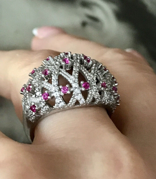 Elegant Wunderschöner DAMEN RING Silber 925 Gr.55 17,5 Rubine?