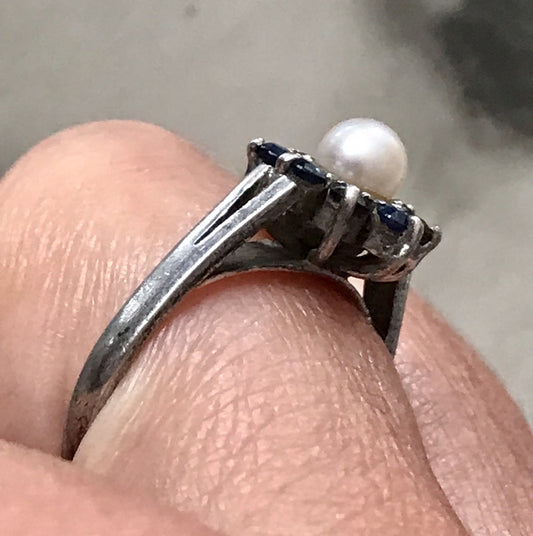 Antik? Vintage Art Déco Damen Ring Perle Spinell ? Saphir? Silber 925 Gr.57 18,1