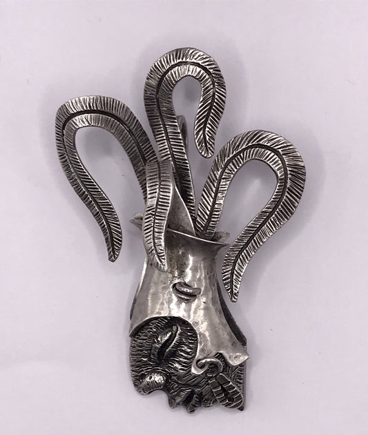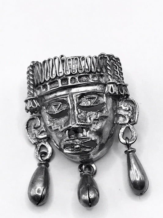 Vintage Azteken Kopf Ethno Maya 2in1 Anhänger Kettenanhänger Brosche 925 Silber