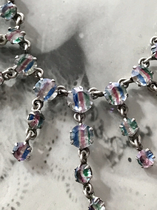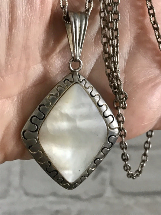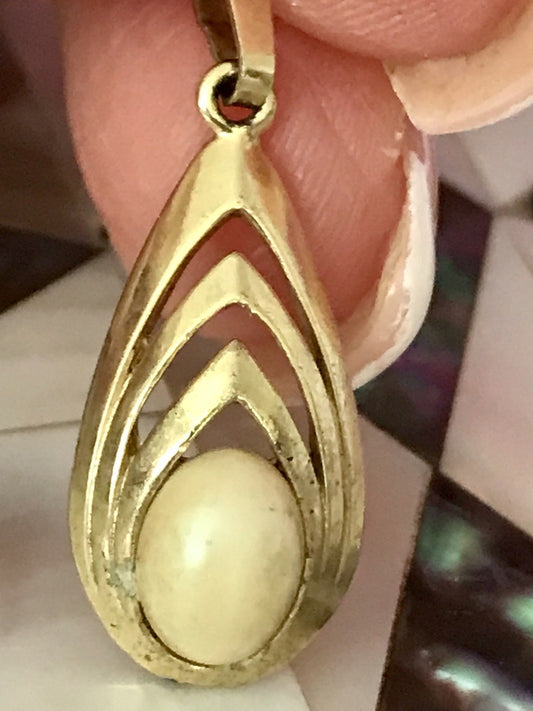 Antik Art Déco versilbert Halskette Perlmutt?Stein Anhänger AH