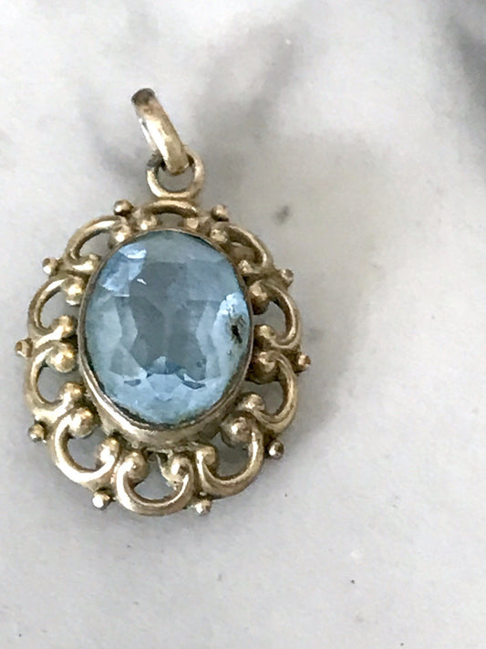 Alt Vintage Edel Anhänger vergoldet SUPER Design blauer Stein