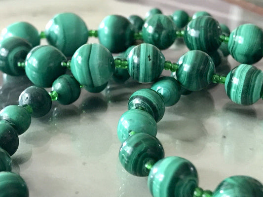 Alt Edel Vintage Halskette Kette Malachite grün Sehr Schön Retro