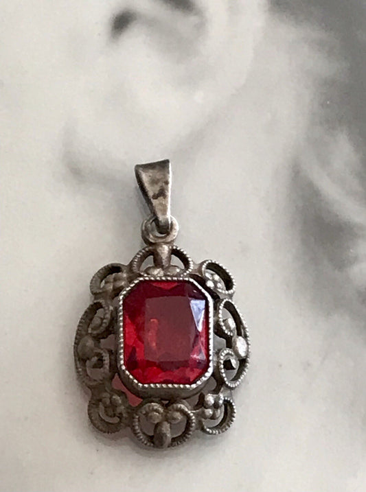 Antik Jugendstil Art Déco Edel Anhänger 835 Silber SUPER Design roter Stein