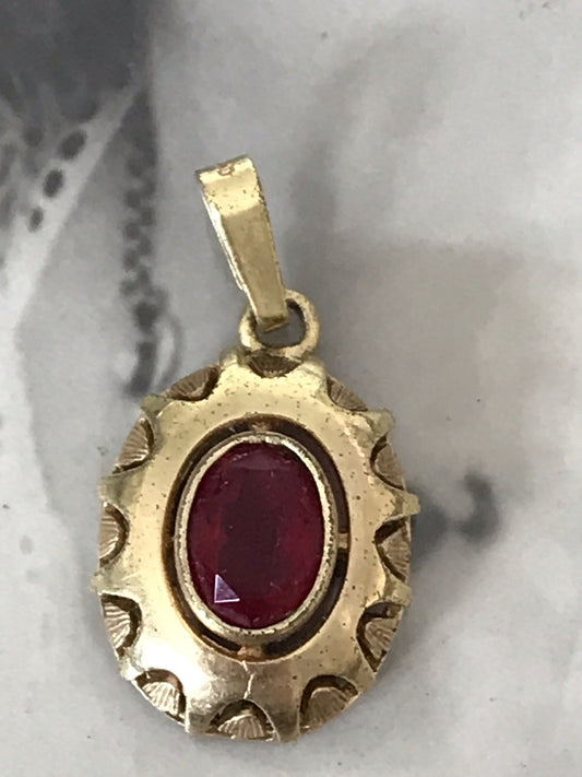 Vintage Anhänger rubin roter Stein Amerik. Doublè vergoldet