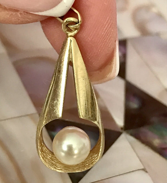 Vintage Designer Anhänger Perle Amerik. Doublè vergoldet