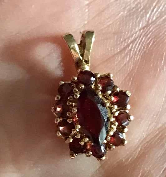 Vintage Edel Anhänger Kettenanhänger Silber vergoldet 835 SUPER Granatsteine