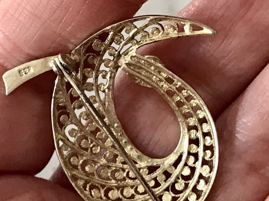 Vintage prachtvoll filigran Brosche Silber 835 Markasite vergoldet Art Déco Stil
