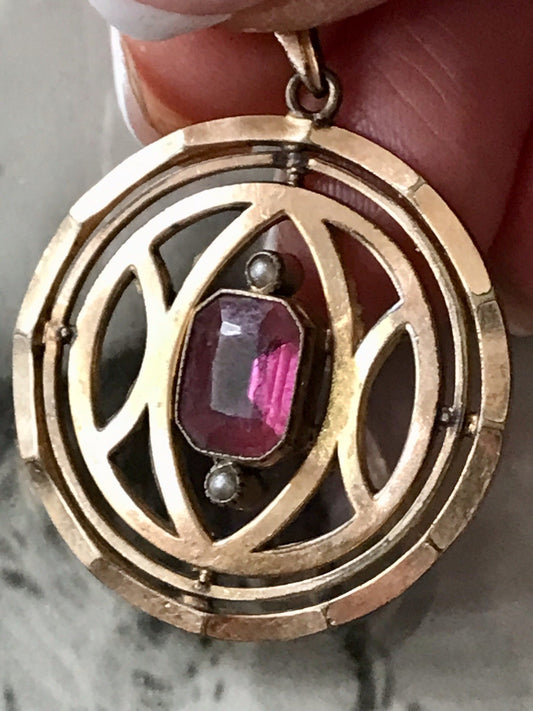 Antik purer Jugendstil Kettenanhänger Anhänger vergoldet rubinroter Stein