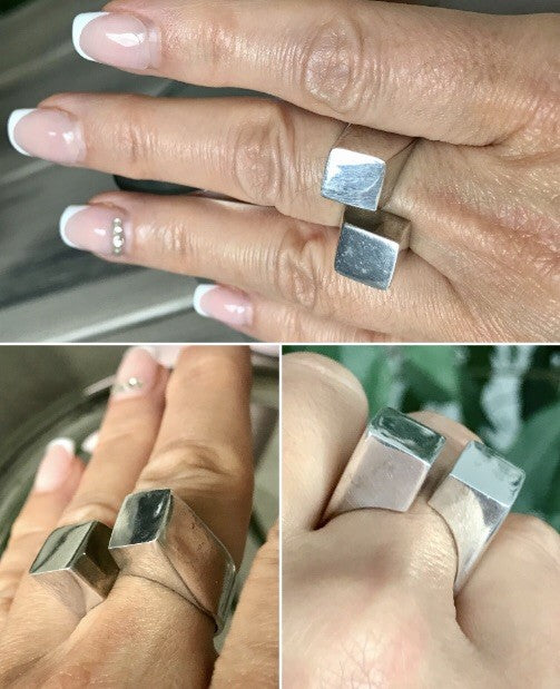 Vintage Modernist Designer DAMEN RING 925 Silber Cube Avantgarde 55 bis 59