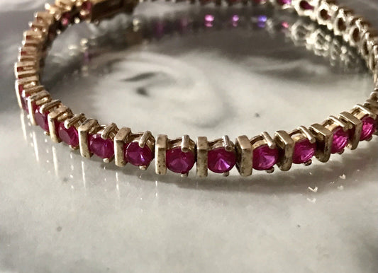 Vintage Tennisarmband Armband 925 Silber vergoldet rubinrote Steine