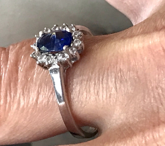 Vintage Entourage Halo Ring farblose Steine & Saphir Silber 925 ~Gr.62 63