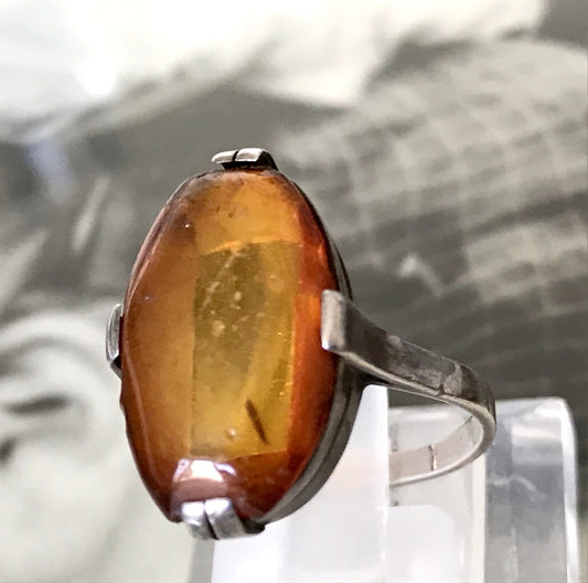 Alt Vintage Edel Bernstein DAMEN RING Silber 835 Super Design Gr. 56 57 schön!