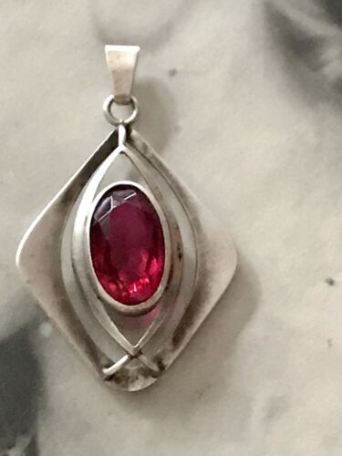 Alt Vintage Kettenanhänger Anhänger 835 Silber Rubinroter Stein Designer