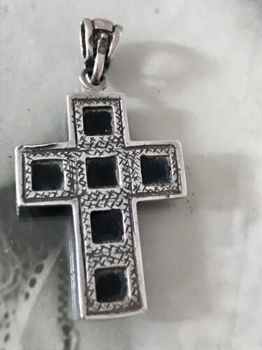 Alt Vintage 925 Silber Kreuz Anhänger Kettenanhänger schwarzer Onyx