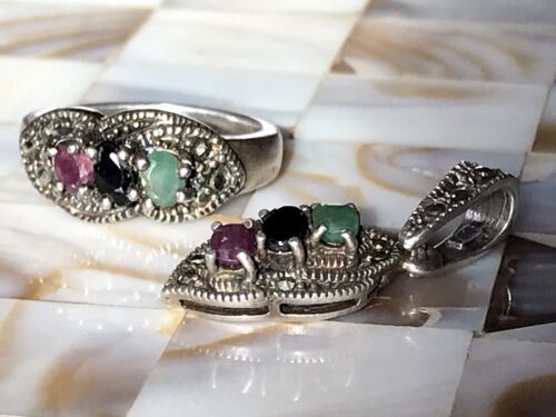 Alt Antik? Art Déco Damen Set Schmuck Ring Anhänger Silber 925 SUPER edel Steine