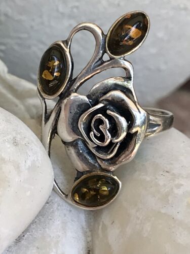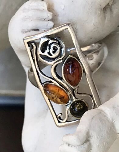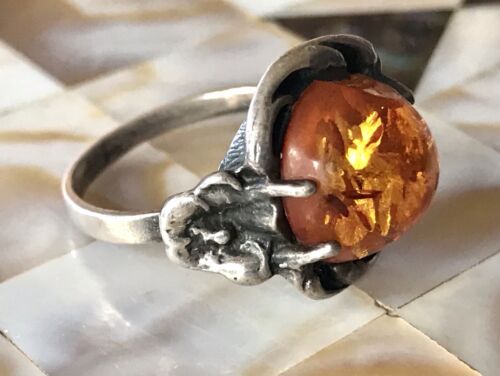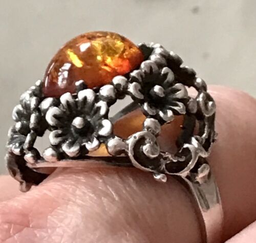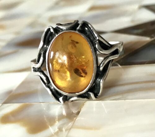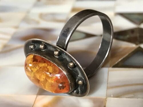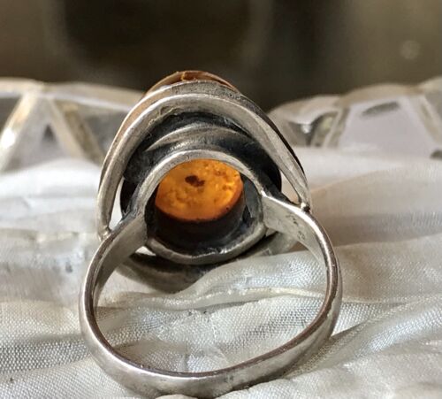 Alt Vintage Bernstein DAMEN RING Silber 925 Gr. 55 56 schön Baltic Amber Polen