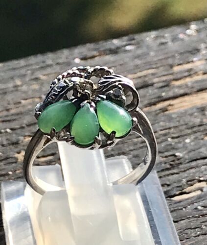 Alt Antik? Art Déco Damen Ring Silber 925 SUPER grüne & farblose Steine Gr.51/52