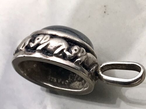 Alt Vintage DAMEN 925 Silber Anhänger Hämatit Stein mit Elefanten-Relief